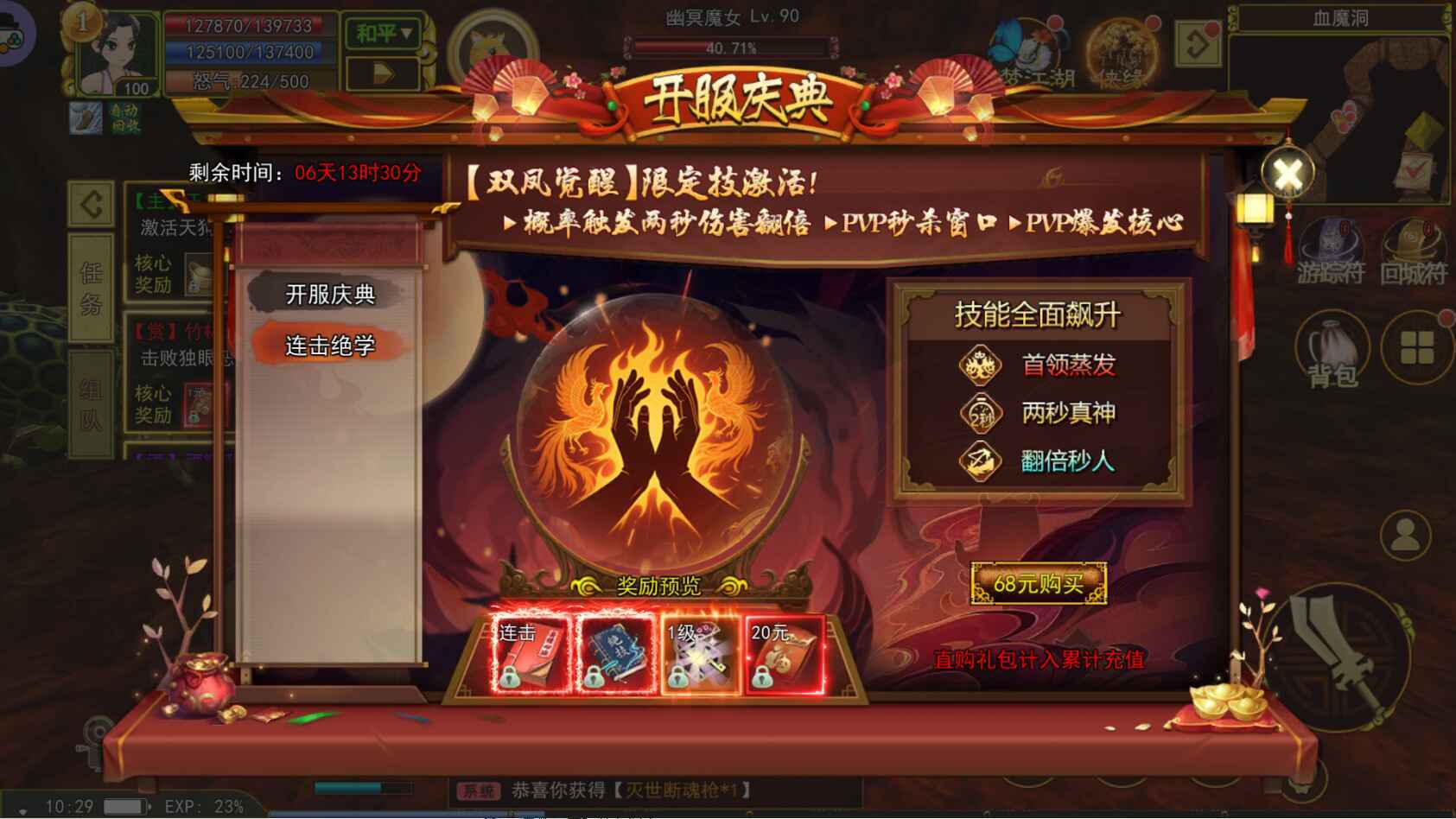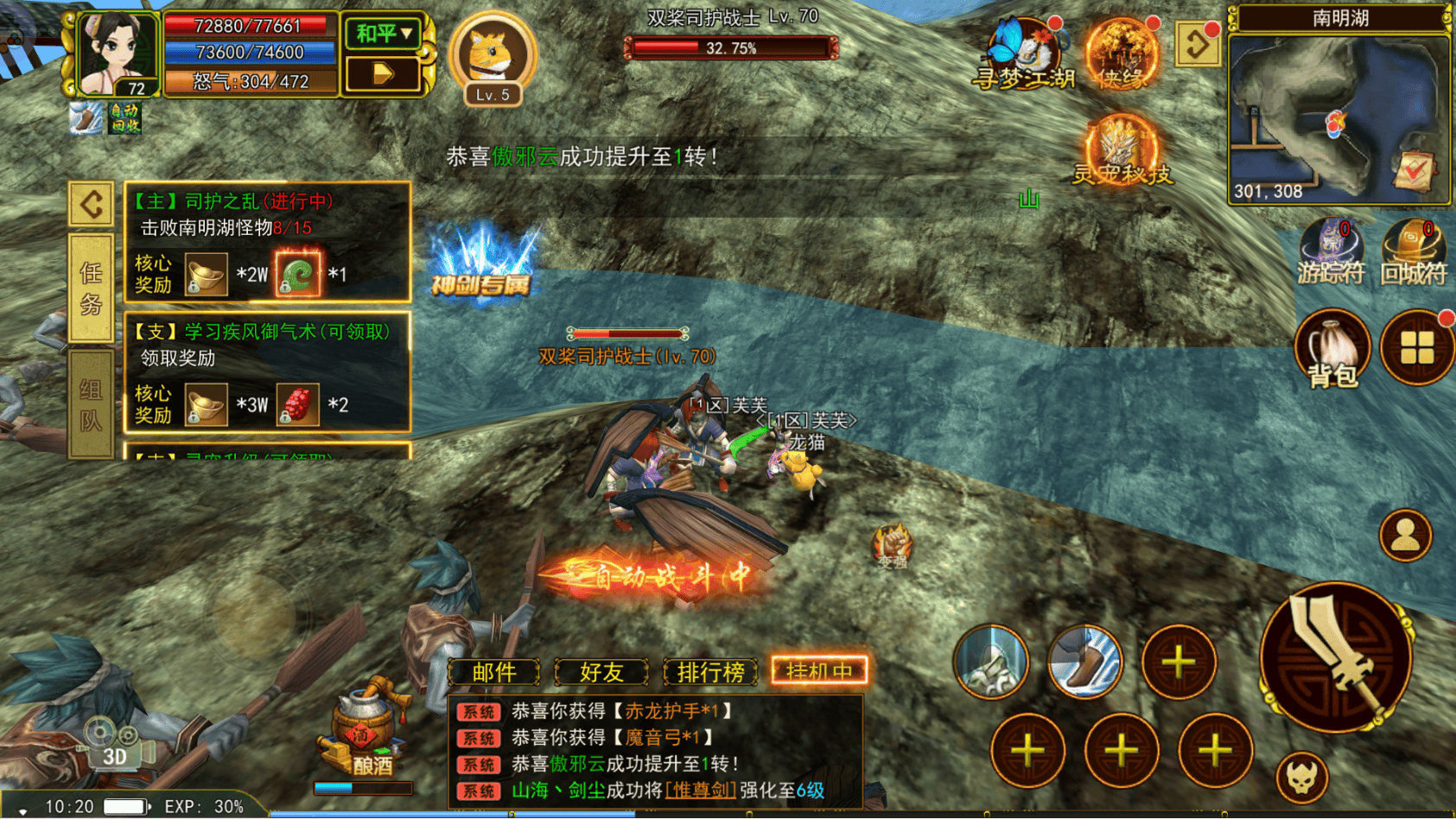 500%高爆实测不虚标,散人打金福利拉满。这是游戏最核心的亮点,区别于其他手游“高爆虚标”的套路,《热江高爆版》全域基础爆率提升500%,普通野怪爆率+50%,世界BOSS爆率翻倍,南明湖、虎峡谷等核心打金地图额外叠加20%掉落加成。经零氪实测,开服半小时即可升至30级,刷怪10分钟就能掉落紫装+非绑元宝,挂机1小时可收获500多非绑元宝+3件紫装,小怪也能出光柱,BOSS必掉极品,彻底告别“刷怪如刮痧”的尴尬。搭配十倍攻速加持,技能衔接丝滑,每一场战斗都极具冲击力。